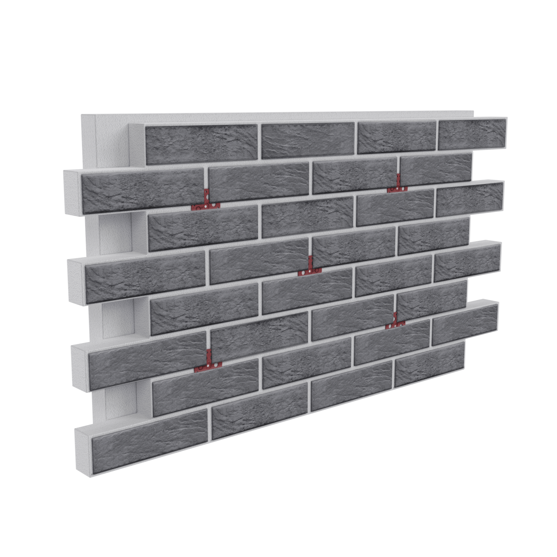 In this case, quarter-lock is located around the entire facade structure perimeter. As a result, thin brick cladding results from bonding two identical insulation parts, ensuring perfect geometry. Additionally, the undesirable arch effect due to internal stress of the whole expanded form was avoided.