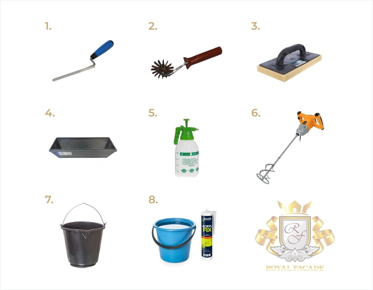 IMPORTANT! If you experiment and add different amounts of solution to the trowel mix, you will get different shades on the facade surface. Only identical proportions of water/acrylic should be added to the mixture! Try to perform the mixing in similar weather conditions: for example, if today is sunny weather and tomorrow has increased humidity – such sharp changes negatively affect the future shade of the joint. If the joints have already been finished, but weather conditions changed the next day, then it’s necessary to protect the facade – cover it with polyethylene film. The joints under the film should be preserved until completely dry and hardened.